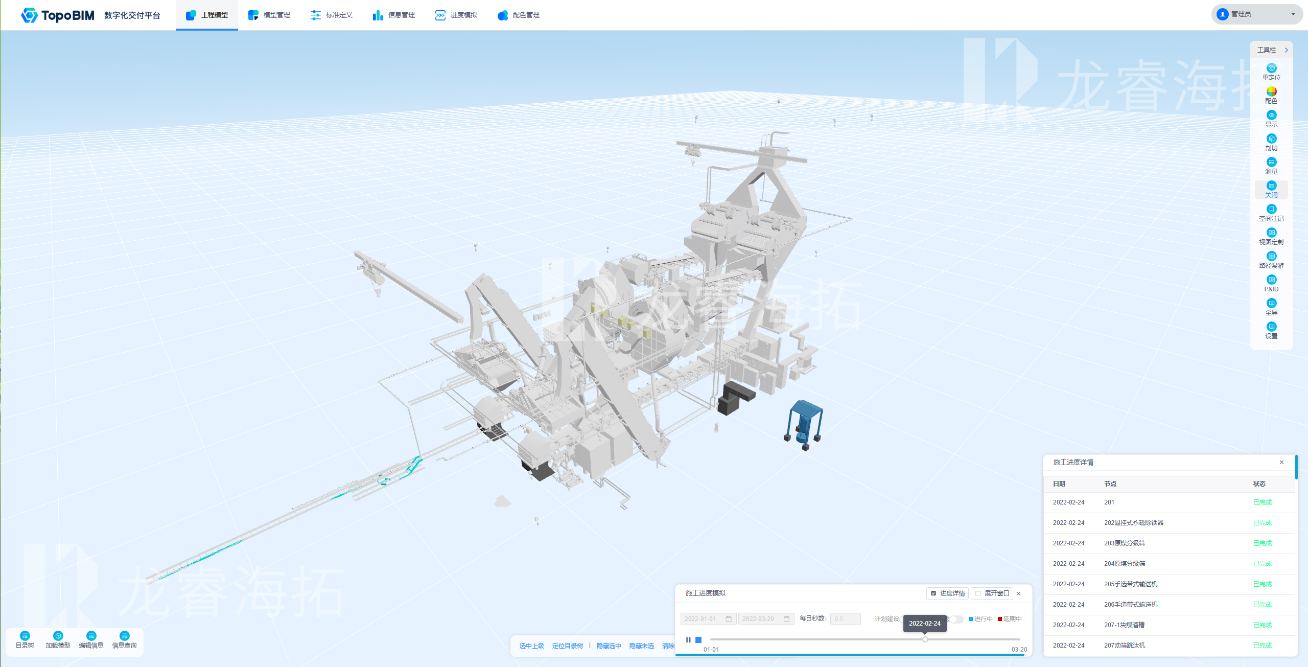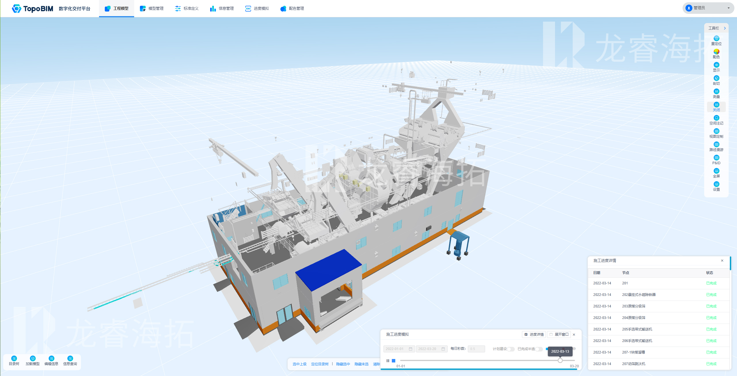 TopoBIM 是承载以工程对象为核心的数据、文档和三维几何模型及其关联关系,管理工程建设过程中产生的需要交付的设计信息、施工信息、竣工信息等内容,传递工程项目建设阶段数字化创建的静态信息,并可与多种工程软件集成并兼容多种文件格式的数字化管理平台。